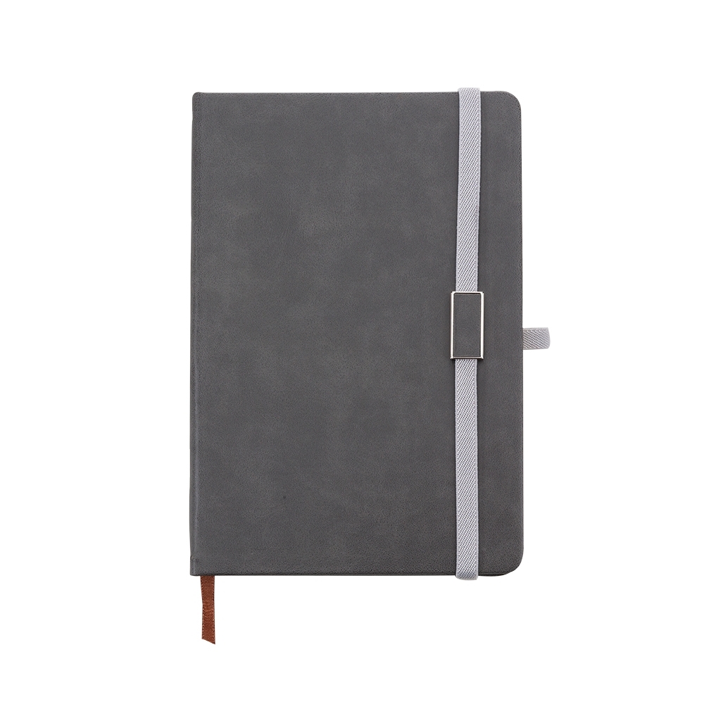 Caderneta emborrachada com suporte para caneta. Contém aproximadamente 96 folhas amarelas sem pauta, suporte de nylon para caneta (não acompanha), marcador de página em cetim e elástico para lacre com plaquinha de centro emborrachado. Altura : 21,4 | cm