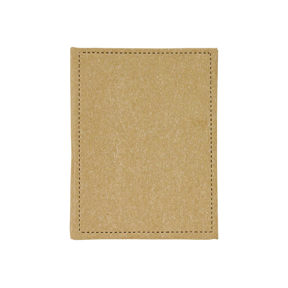 Caderneta de anotações com capa dura, sticky notes e miolo sem pauta na cor amarela.