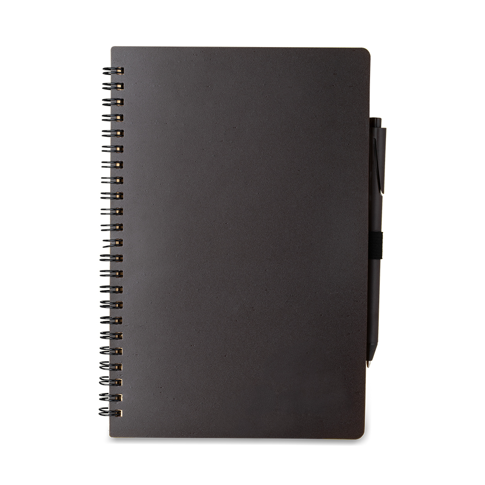 Caderno produzido 30% de grãos de café e 70% de PP misto, com suporte para canetas e miolo com 70 folhas pautada bege. Tamanho total aproximado: 21x14,5cm, Acompanha caneta. material plástico e café. 70 folhas, 70g gramatura