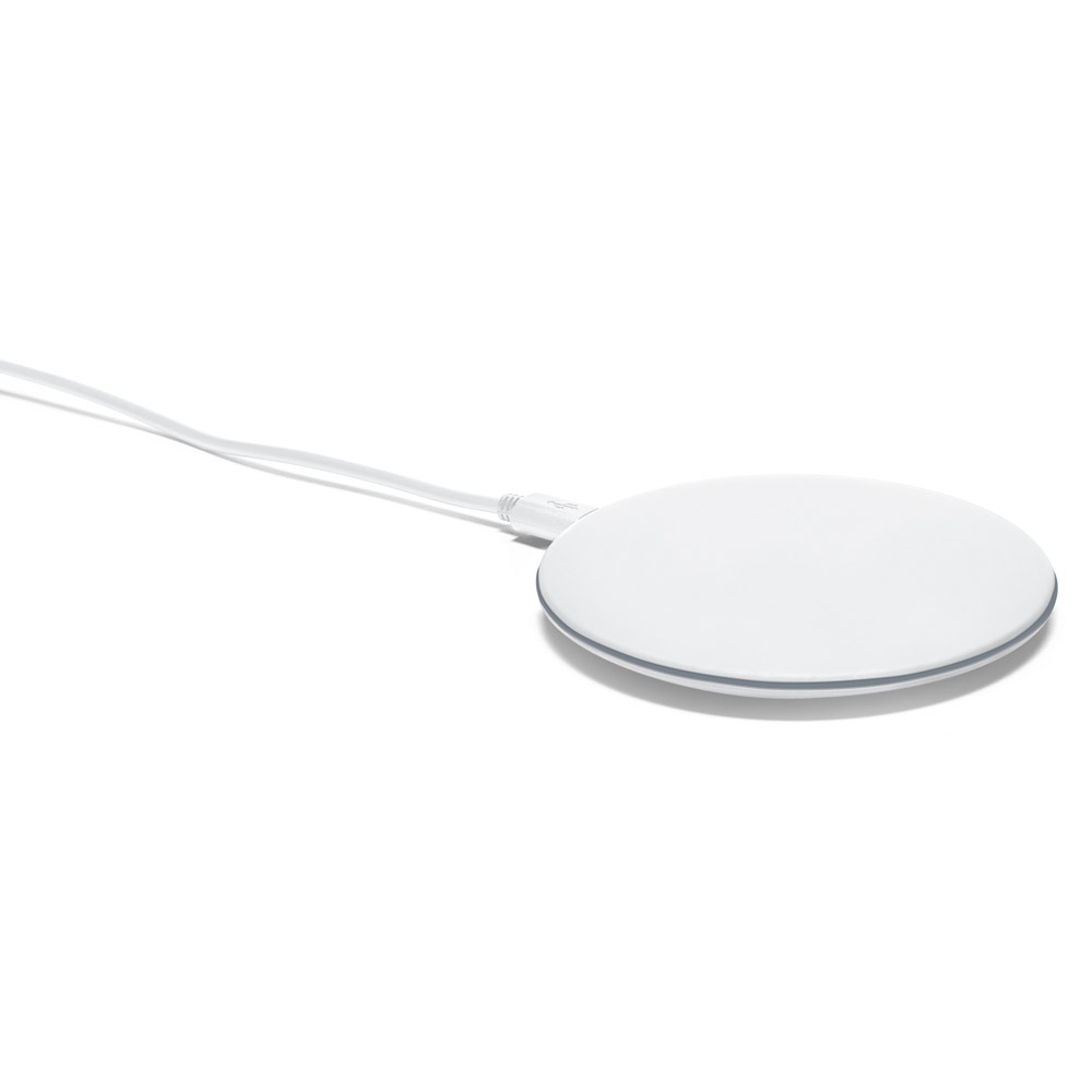 Carregador wireless super rápido em ABS com acabamento emborrachado. Potência máxima de carregamento de 15W. Incluso cabo USB de 1 m para carregar. Compatível com smartphones com tecnologia de carregamento sem fios. Fornecido em caixa. ø99 x 9 mm | Cabo: